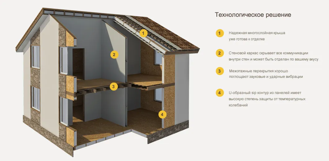 Срок эксплуатации термодомов действительно составляет минимум 80 лет. Это обусловлено, во-первых, высокими эксплуатационными качествами пенополистирола: он практически не деформируется под воздействием времени, погодных условий и прочих воздействий, а также не подвержен гниению благодаря его небиологической природе. ОСП-плиты также пропитаны водоотталкивающим составом, что полностью предотвращает впитываемость влаги и, соответственно, гниение.